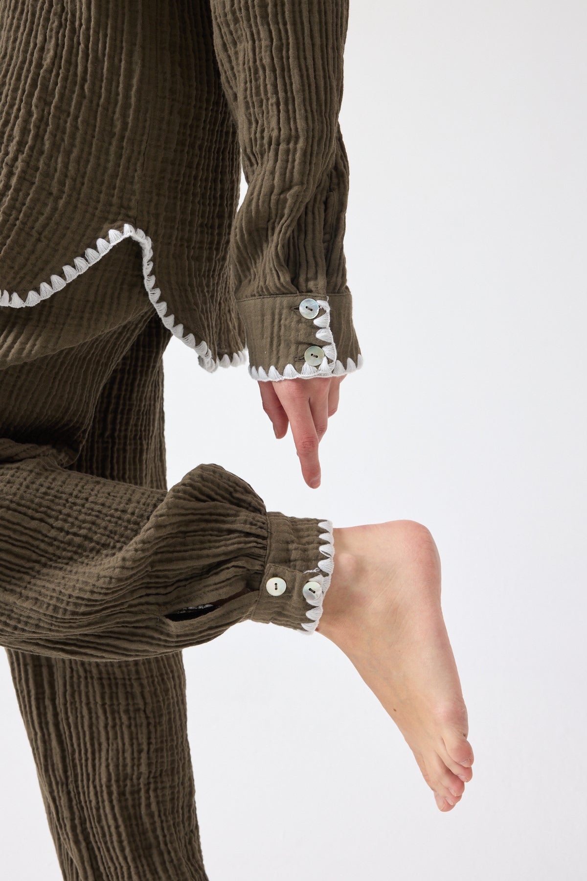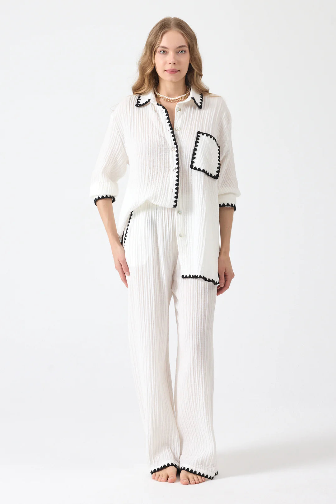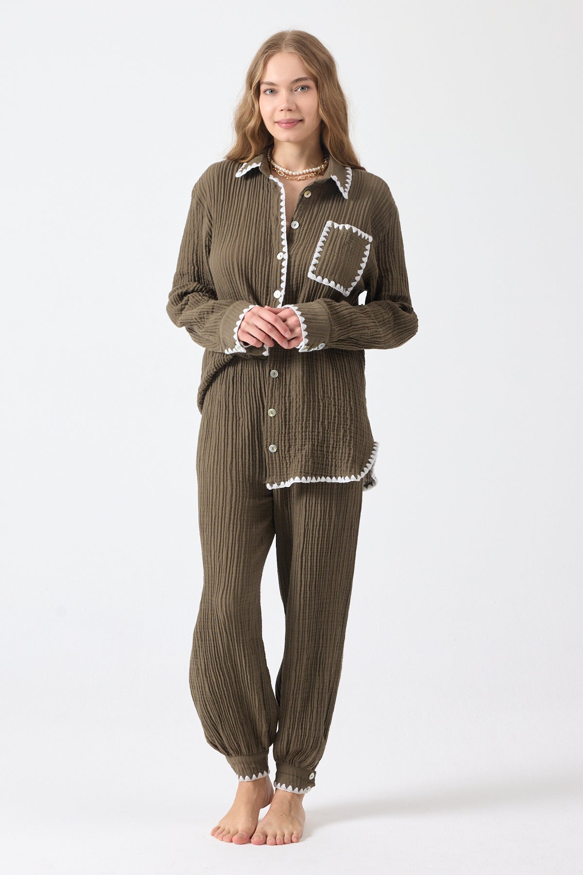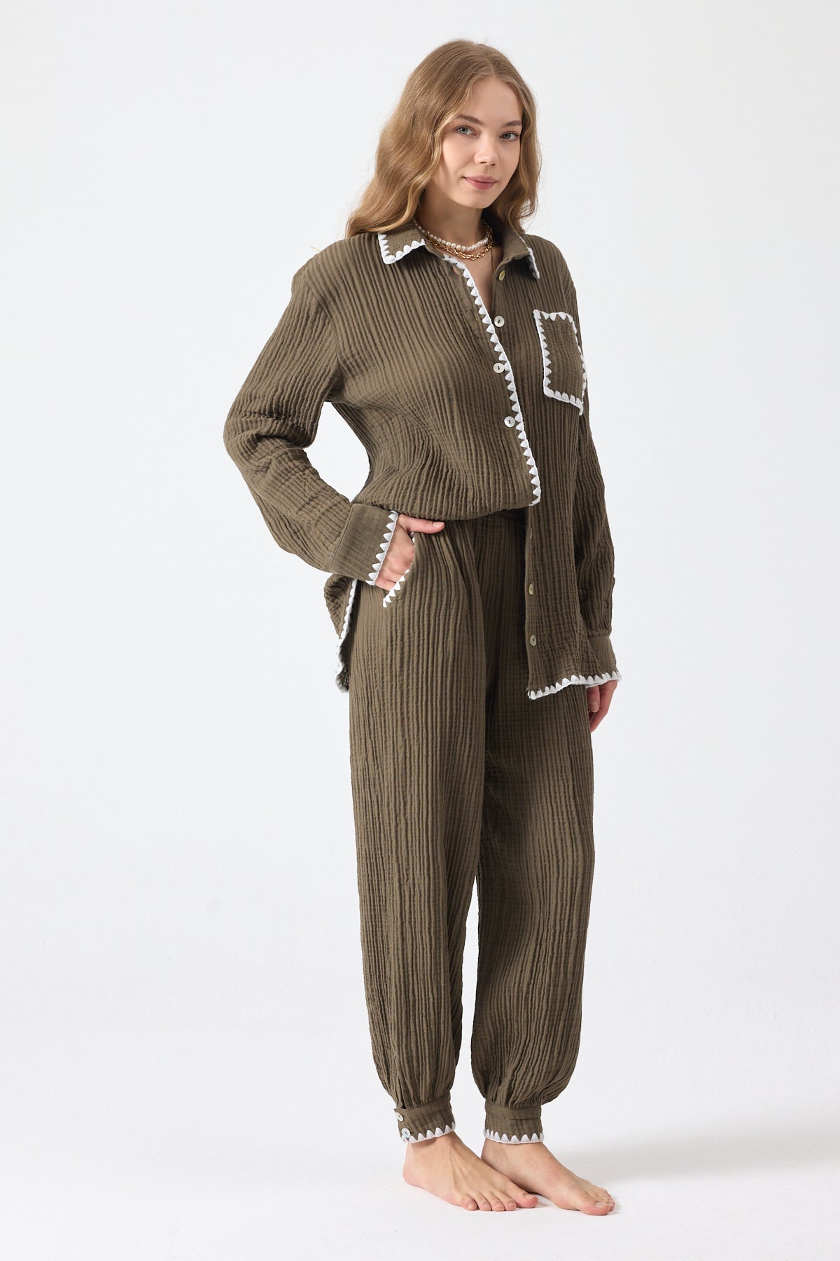 Pantolon ve gömlek iki parçadan oluşmaktadır.