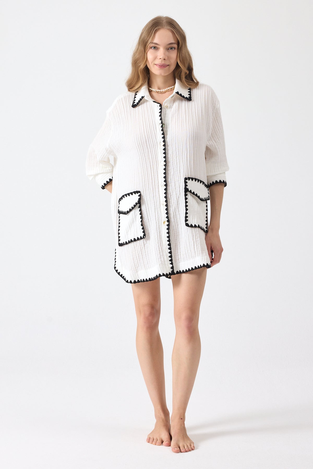 %100 Pamuk ili katlı müslin kumaştan üretilmiştir. Ürün standart tek bedendir.