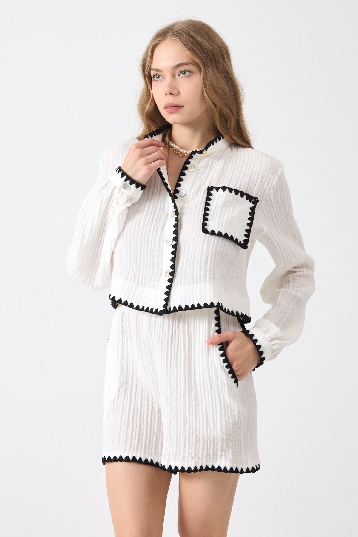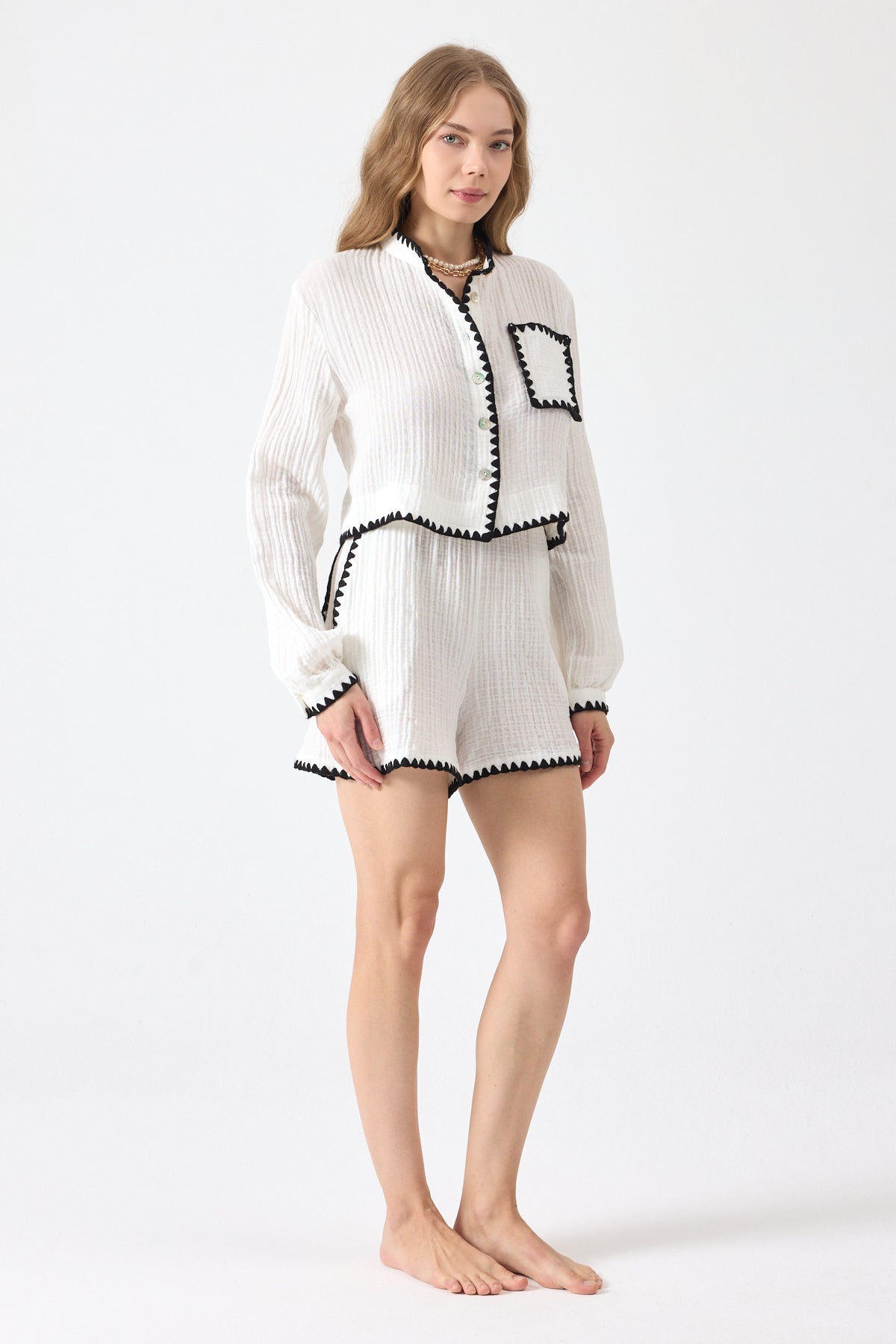 Şort ve gömlek iki parçadan oluşmaktadır.
