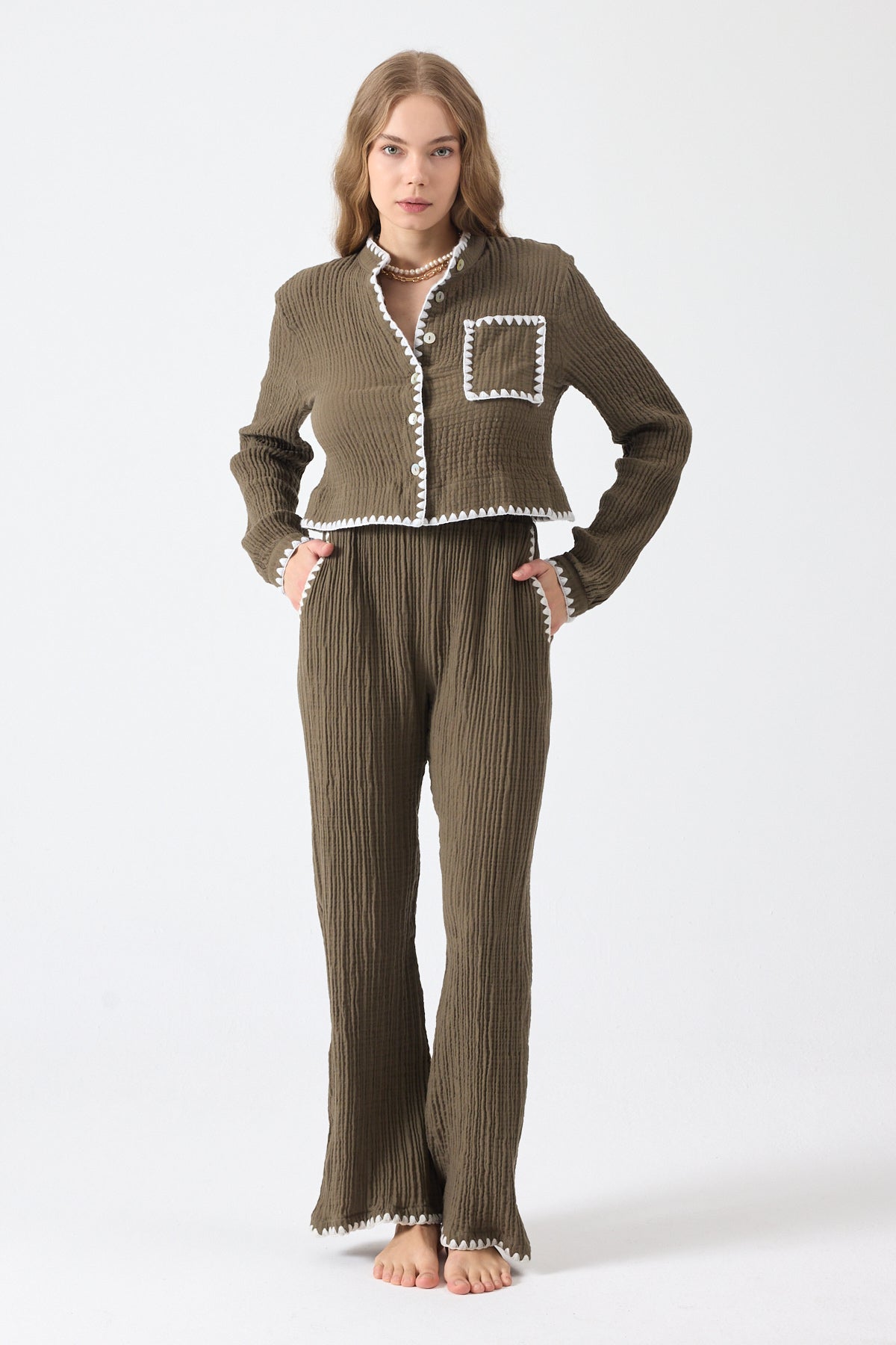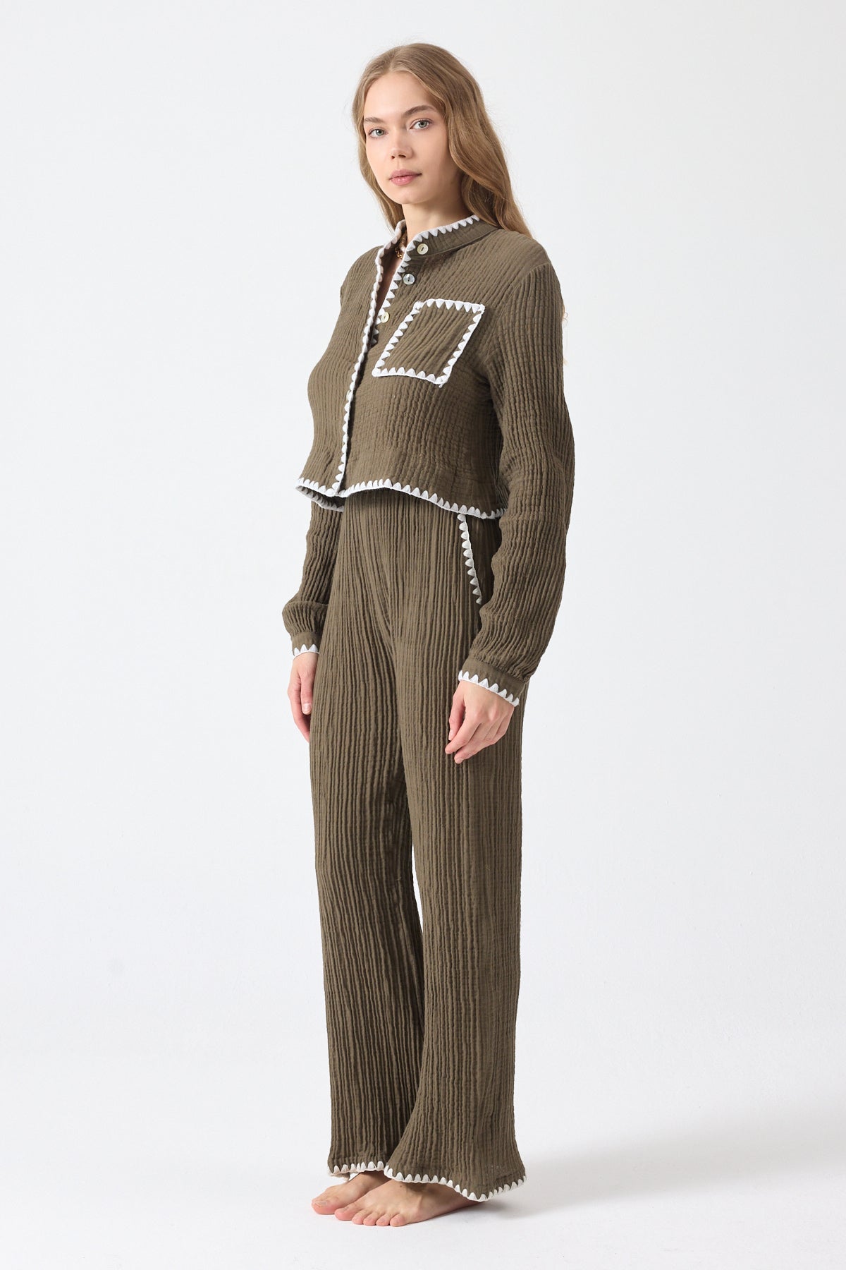 Pantolon ve gömlek iki parçadan oluşmaktadır.