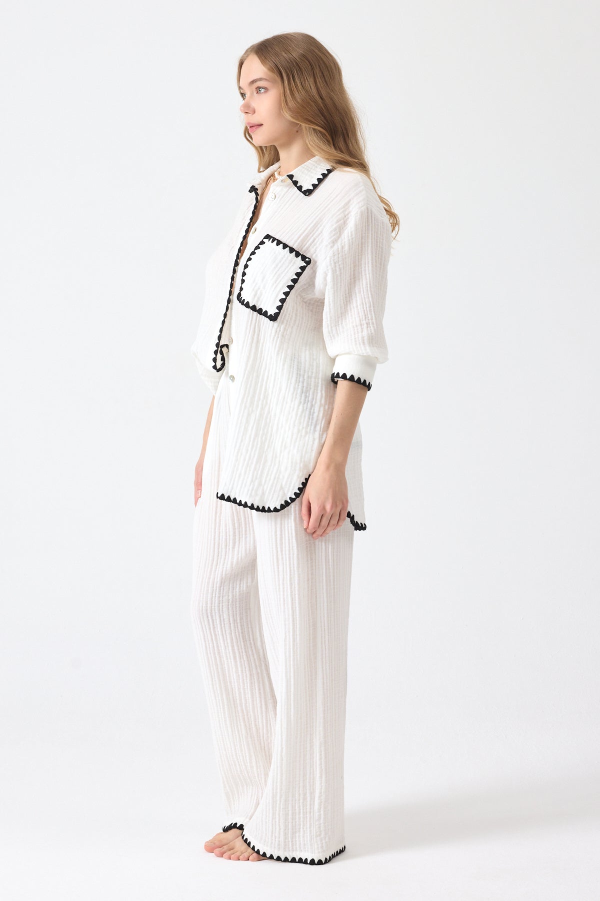 Pantolon ve gömlek iki parçadan oluşmaktadır.