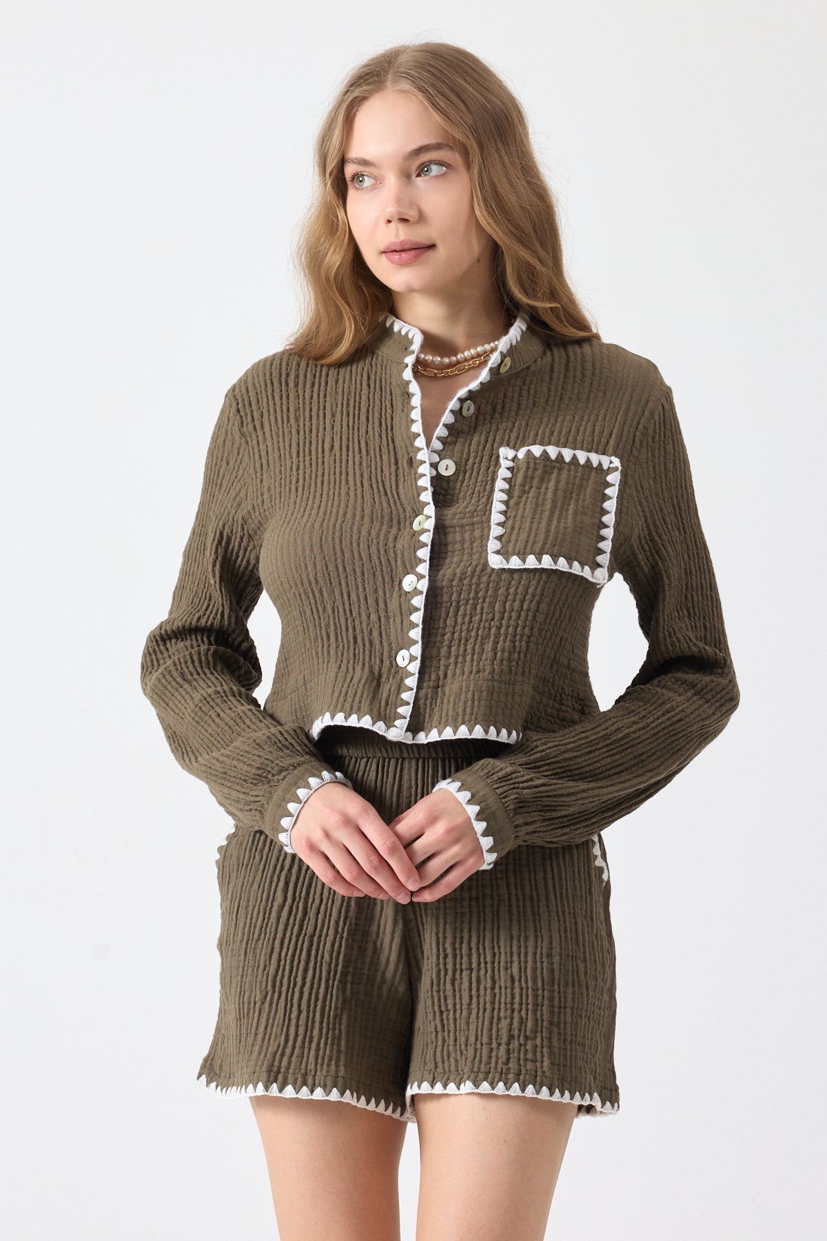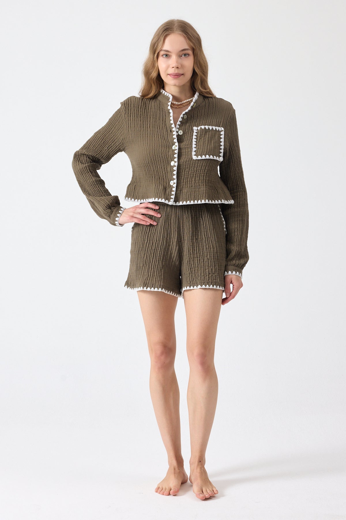 Şort ve gömlek iki parçadan oluşmaktadır.