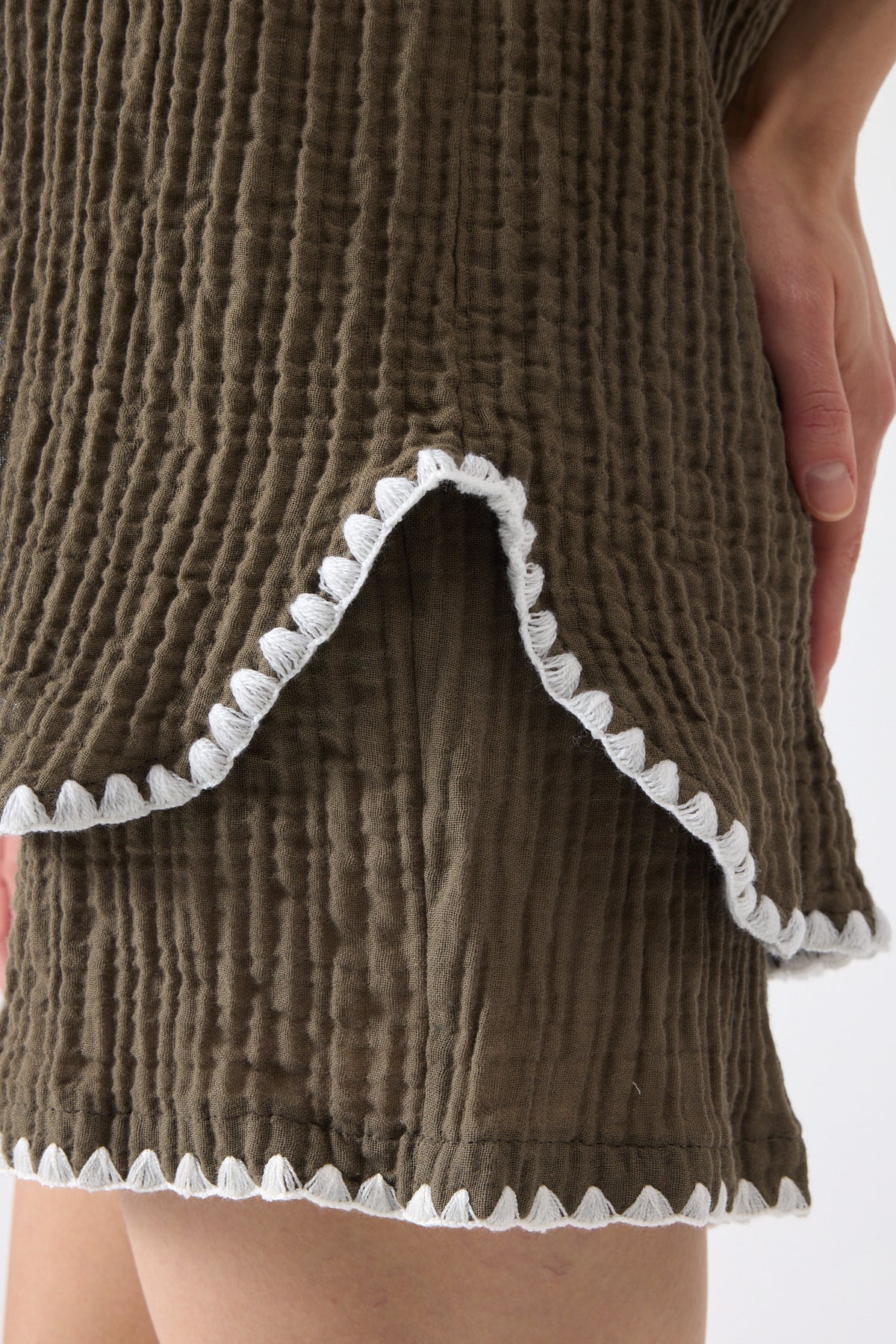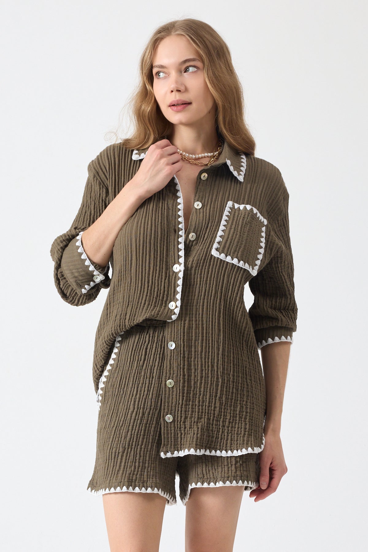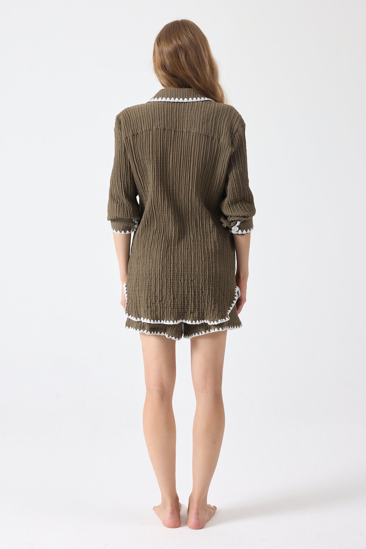 Şort ve gömlek iki parçadan oluşmaktadır.